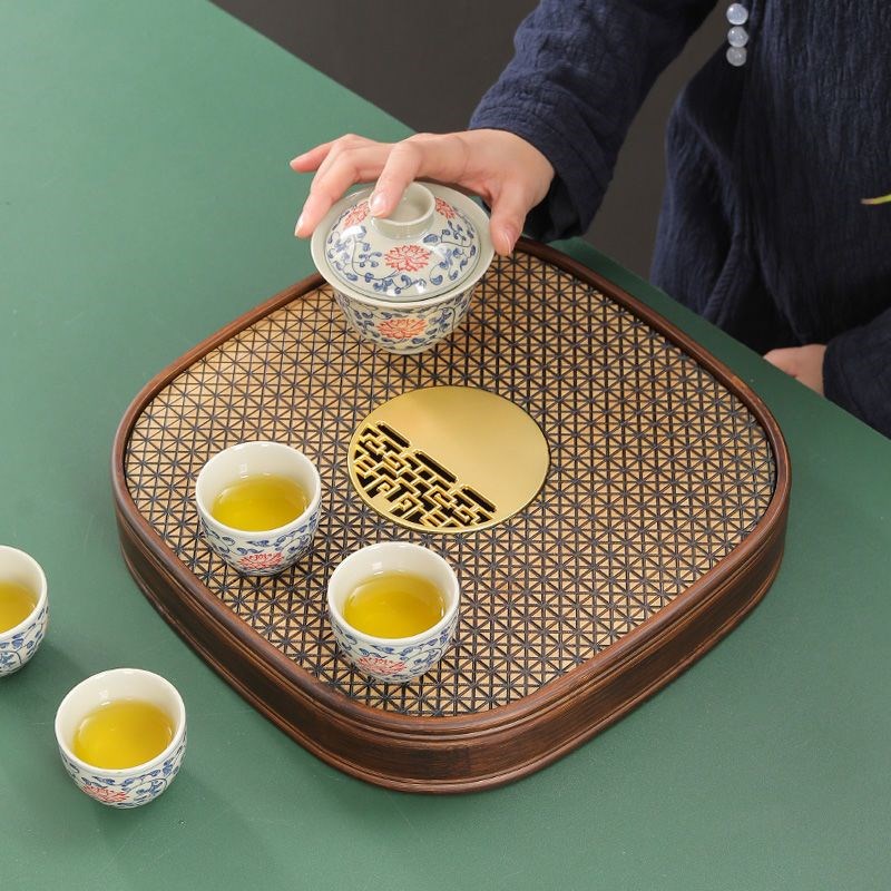 新闽政盛水茶盘竹制家用小茶盘沥储水式简约托盘日式复.古四方干