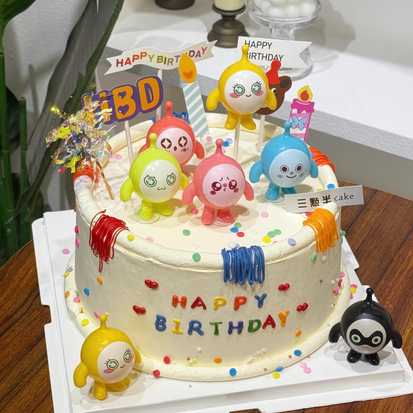网红蛋仔派对蛋糕装饰摆件卡通公仔儿童生日派对甜品烘焙插件插牌