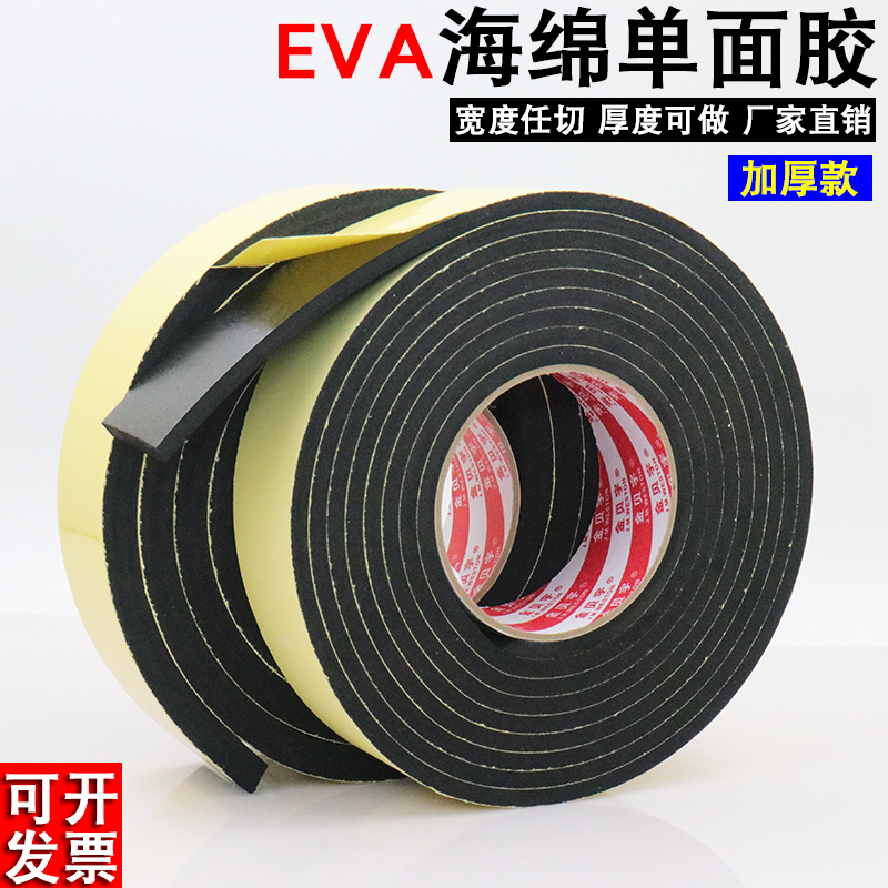 加厚EVA海绵单面胶带10-15-20mm厚黑色海绵单面被胶自粘强力高粘度偏硬海绵垫防撞耐磨防震嚣张机器垫脚泡沫