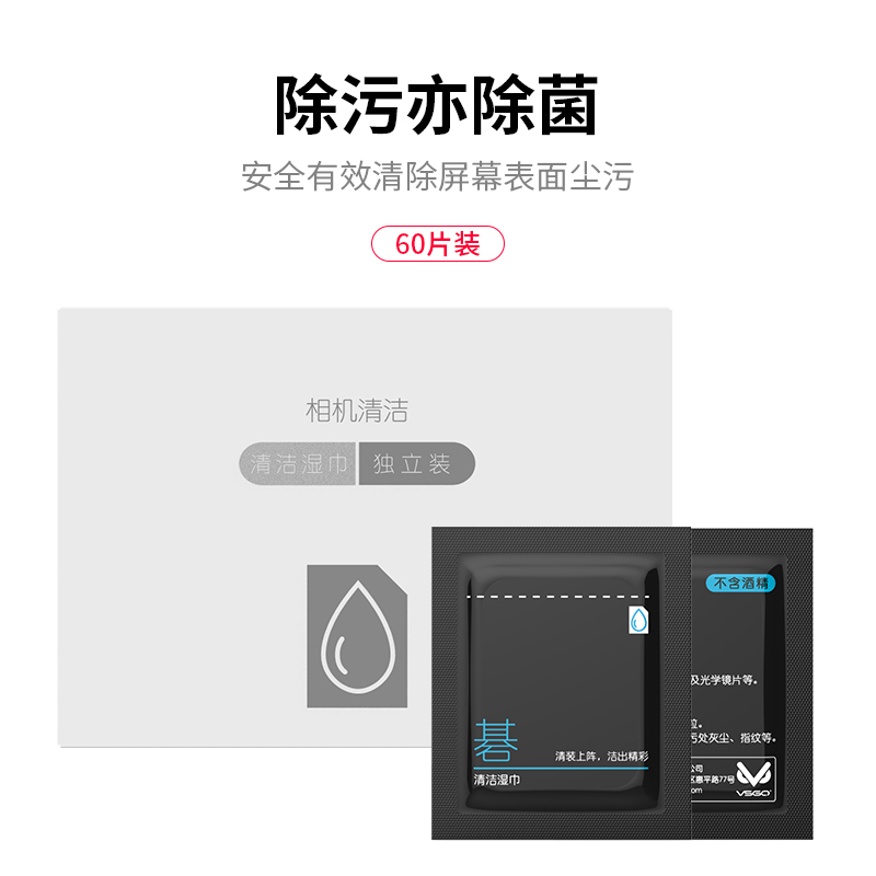 VSGO威高镜头纸湿巾微高适用于微单反相机镜头UV手机屏幕电脑液晶望远镜擦眼镜防雾一次性清洁擦拭纸不伤镜片