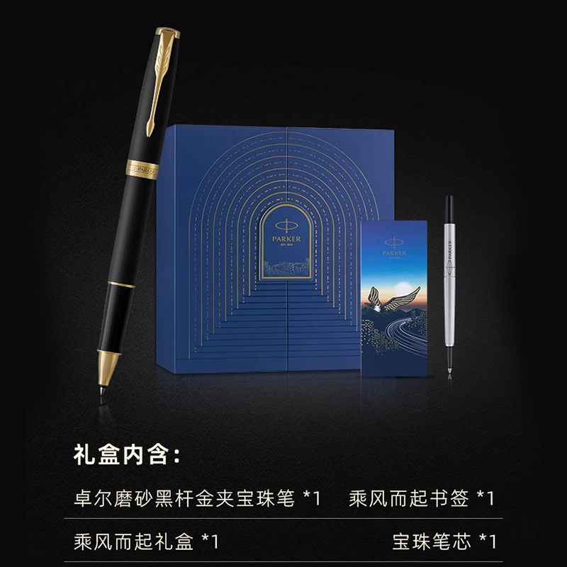 【商务尊享】PARKER 派克卓尔磨砂黑杆金夹宝珠笔乘风而起礼盒定制高档签字笔男士送人礼物刻字礼盒
