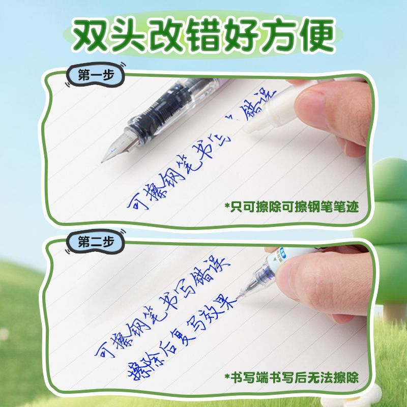 爱好双头复写笔消字笔可擦晶蓝钢笔墨水练字专用魔笔可擦字的褪色笔小学生专用消除字迹擦神器魔力擦消失笔囊