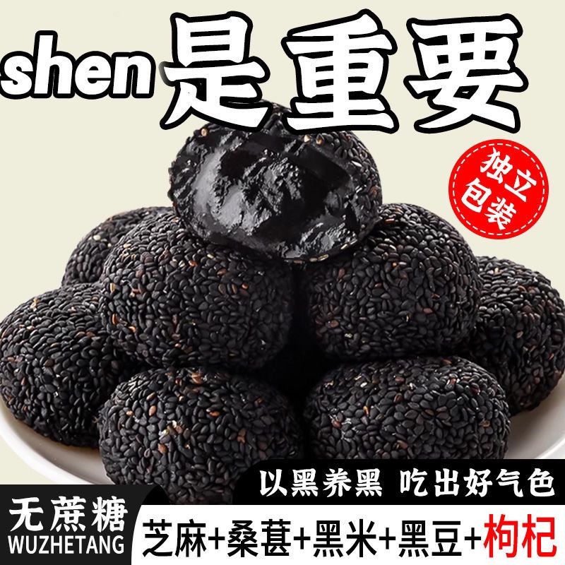 五黑麻薯黑桑葚黑米黑枸杞黑芝麻球早餐食品中老年健康无蔗糖零食