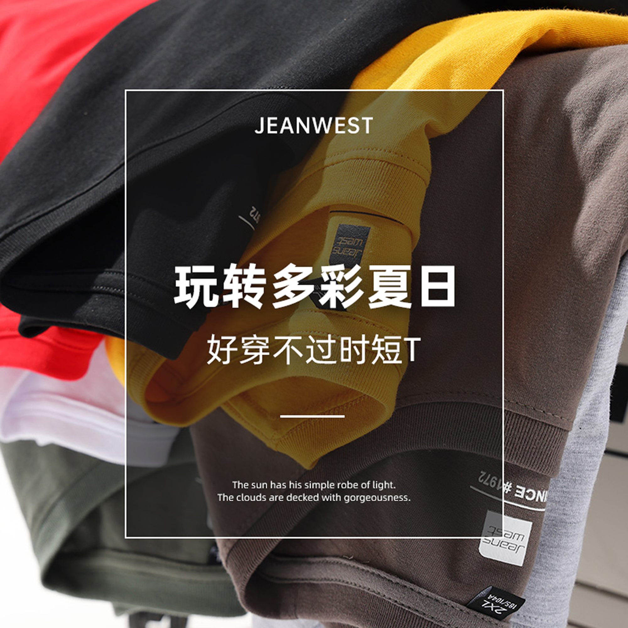 JR真维斯男装短袖T恤夏季男款宽松印花T恤青年纯棉圆领短袖上衣