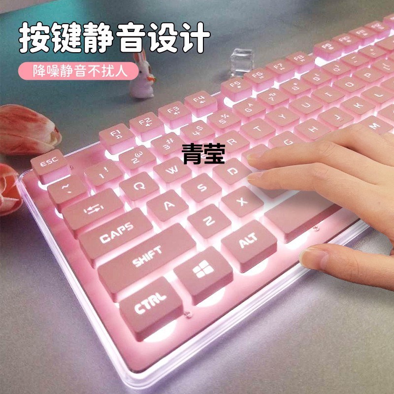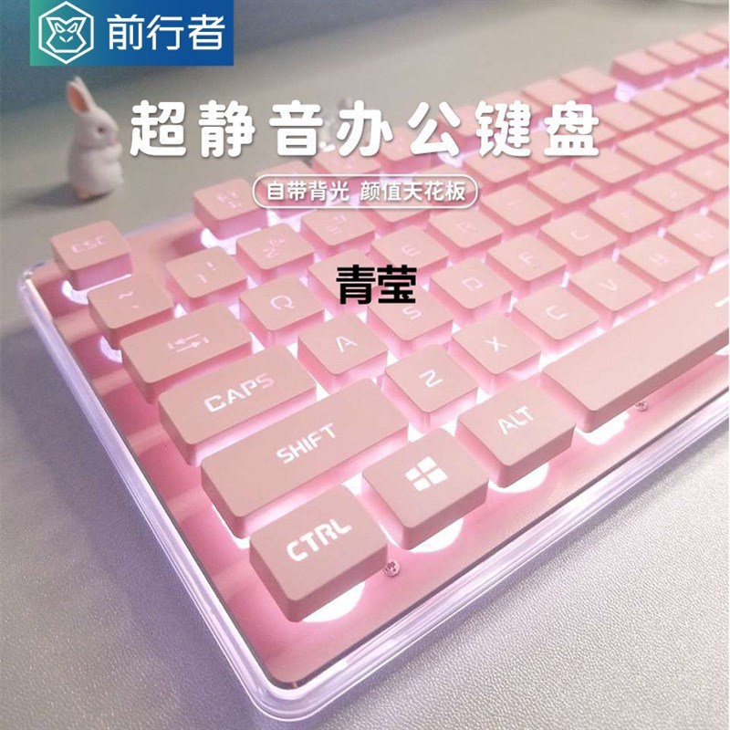 7静音键盘女生办公粉色高颜值无线电脑机械手感鼠标套装青