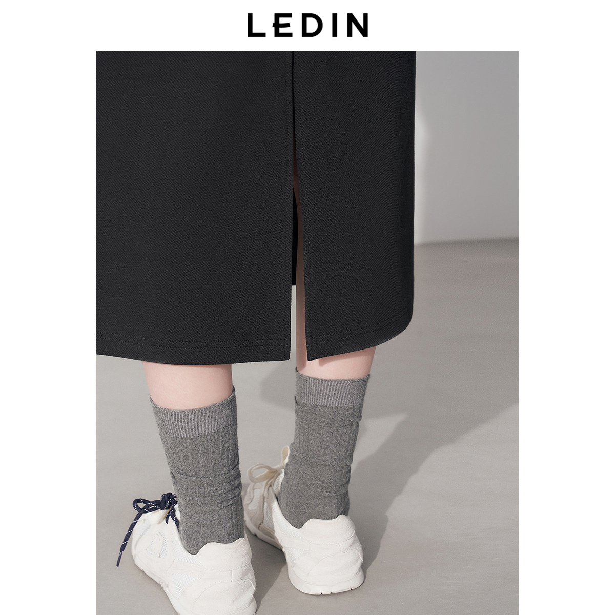 直筒半身裙女中长款秋季新款灰色高腰开叉遮胯显瘦一步长裙休闲裙
