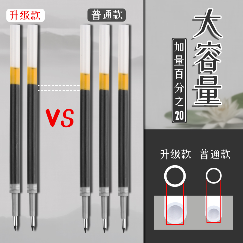 100支中性笔笔芯筒装按压按动式签字笔芯0.5黑色子弹头学生用刷题粗管替换芯碳素水性笔黑笔心学习用品
