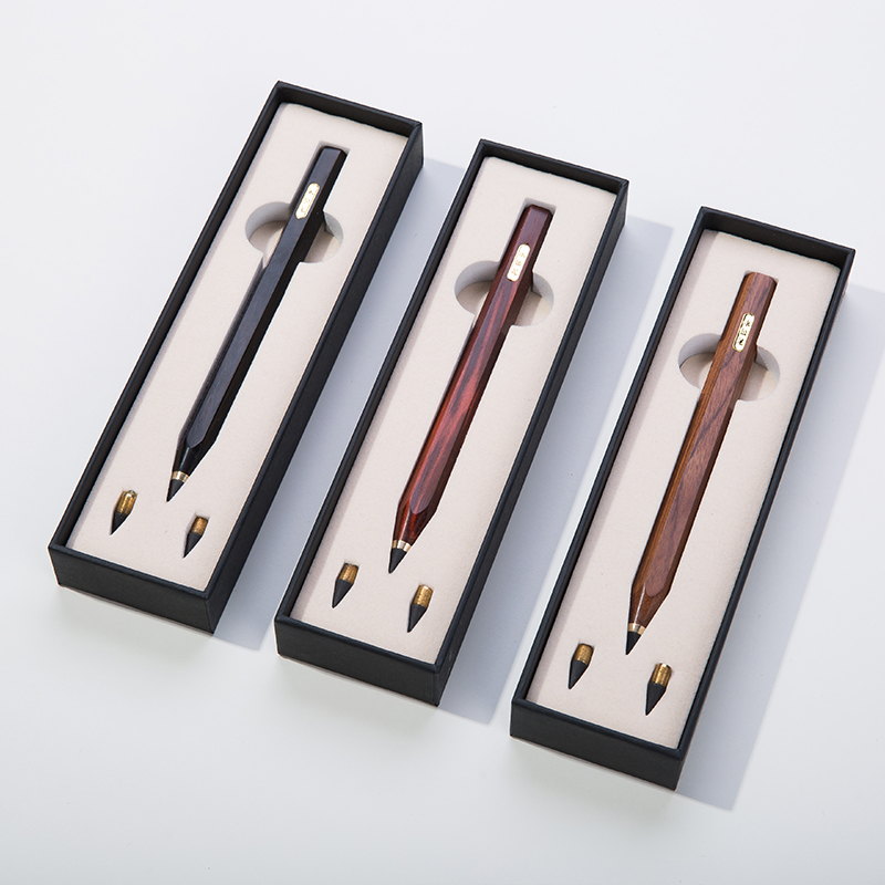 写不完的木质黑科技永恒笔铅笔礼盒商务高档实木签字笔刻字定制红木碳素笔檀木笔金属木杆中性笔教师节礼物