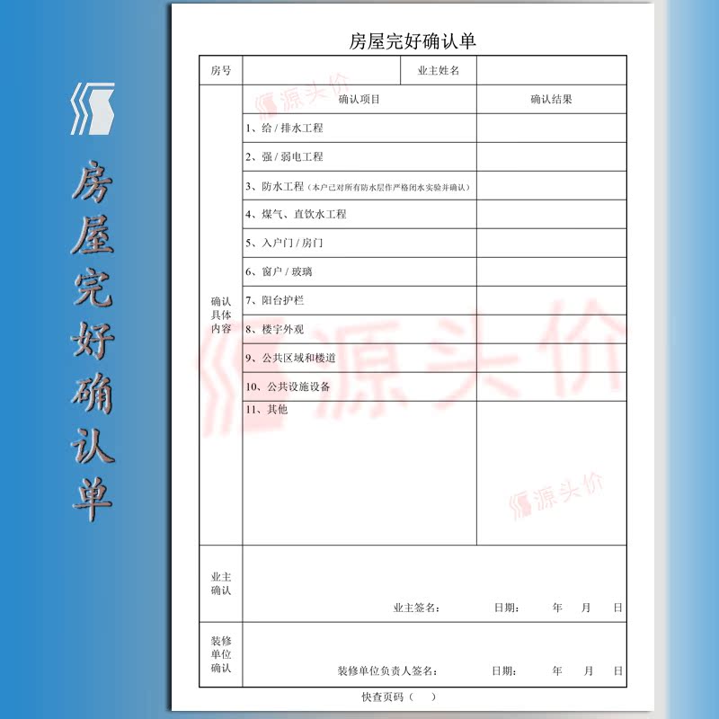 房屋完好确认单装修单位业主房子合同协议书本中介表明细交接验收