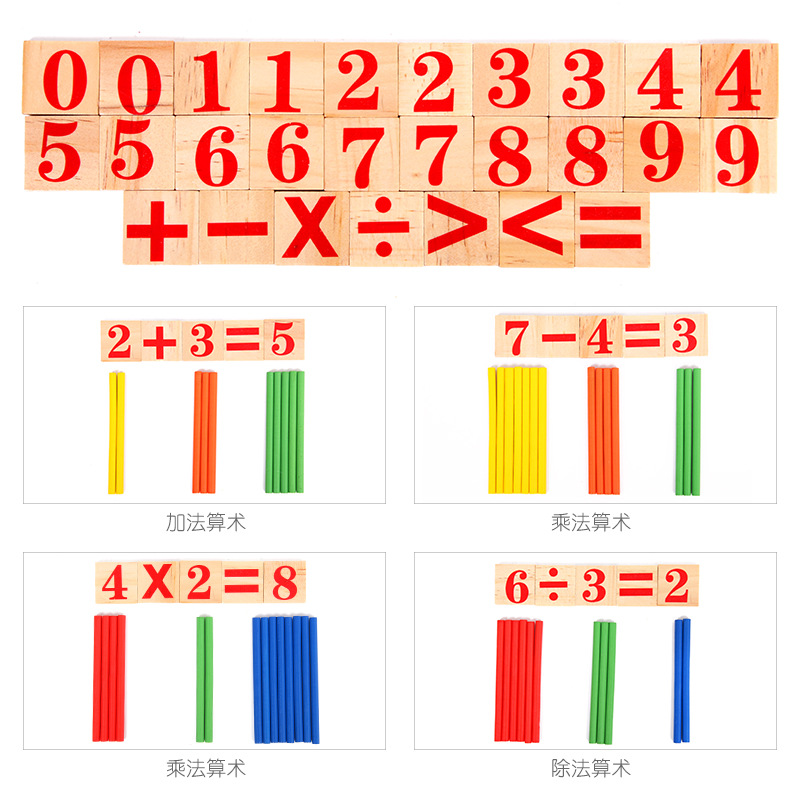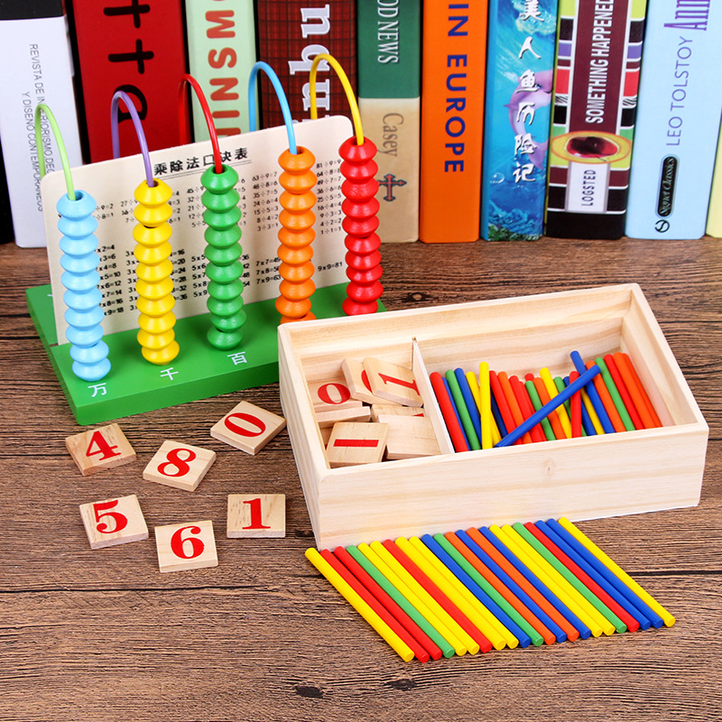 木制益智科教多功能计算架学习盒儿童数数棒数学加减运算早教玩具