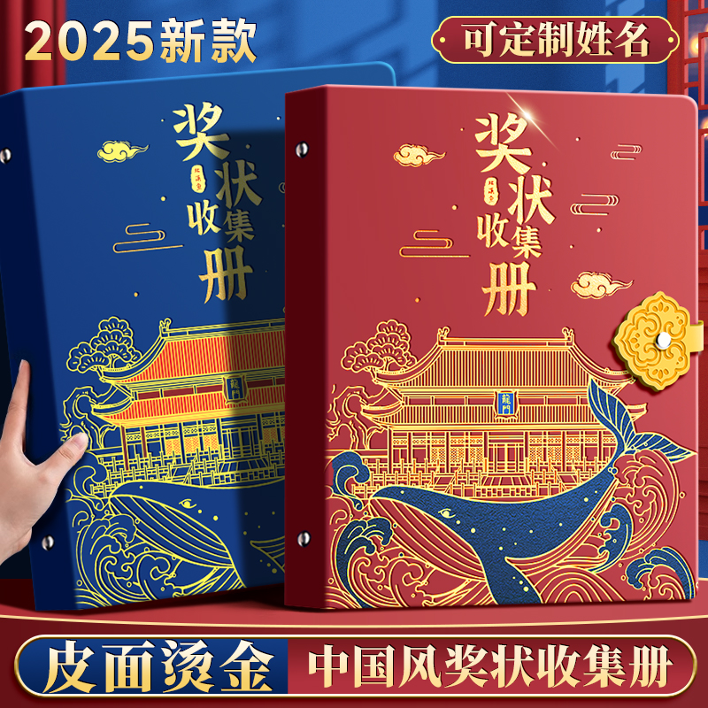 2025中国风皮面a4奖状收集册小学生可定制姓名a3男孩女孩收纳册高颜值儿童画画册收纳袋整理神器放奖状的册子