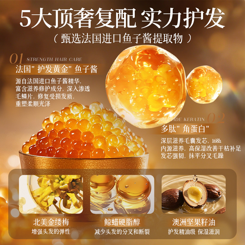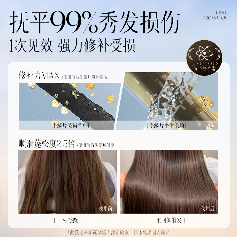 鱼子酱发膜修复干枯补水蛋白矫正柔顺顺滑毛躁免蒸护发素染烫受损