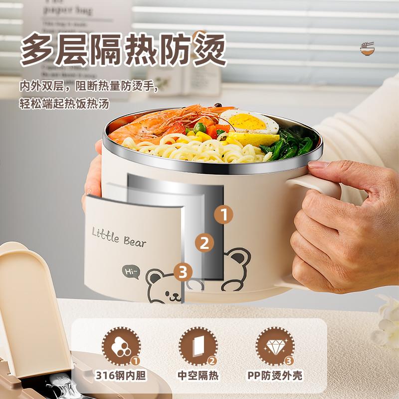 泡面碗宿舍学生带盖日式316不锈钢保温大容量食堂打饭方便面神器