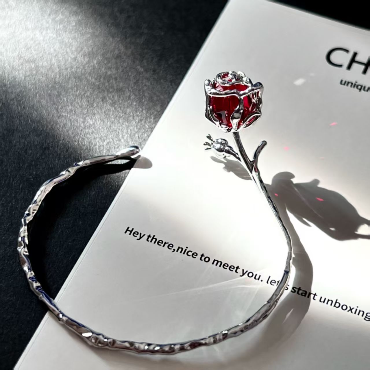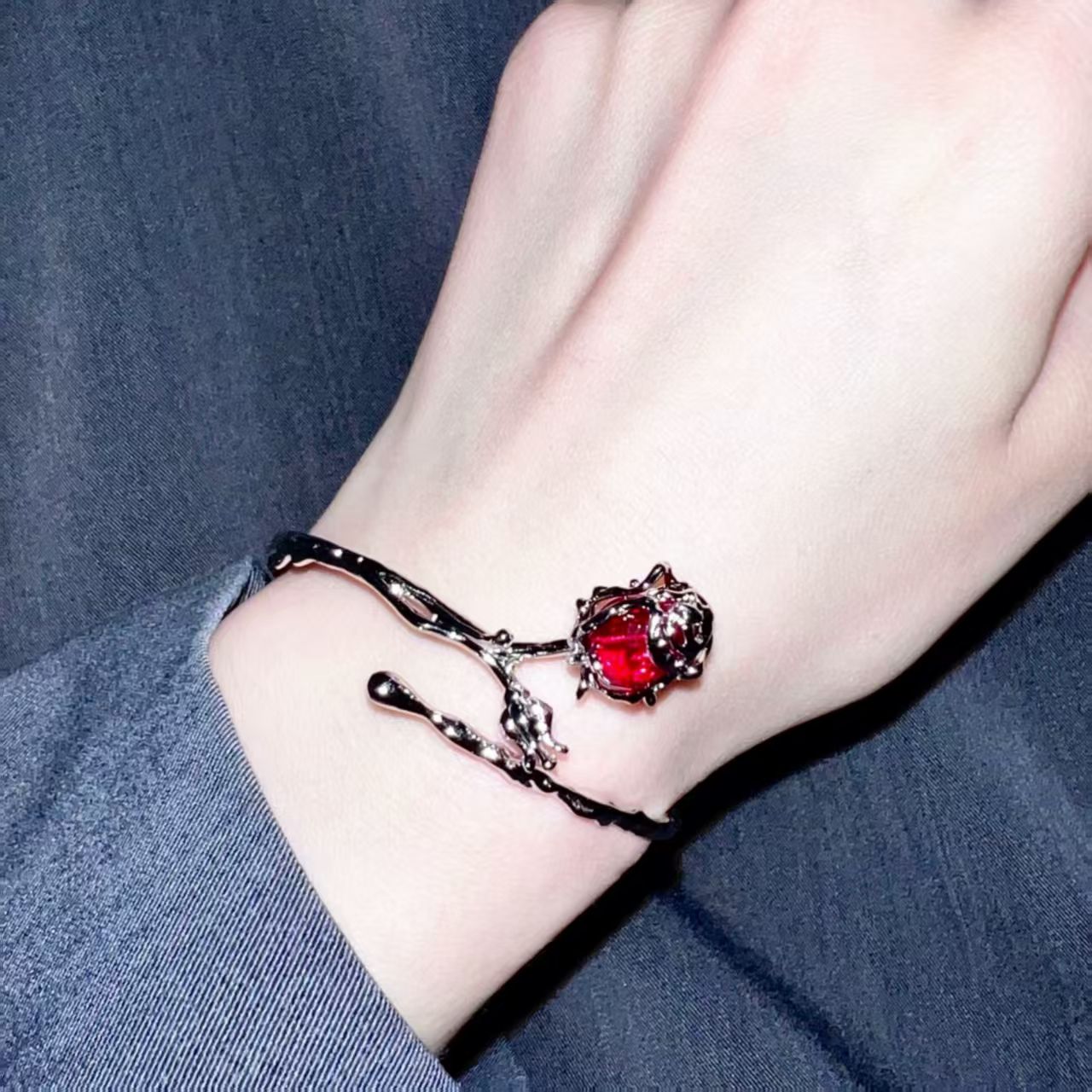 以瑰之名 冰山熔岩红玫瑰花朵藤蔓缠绕手镯高颜值手饰送女友礼物