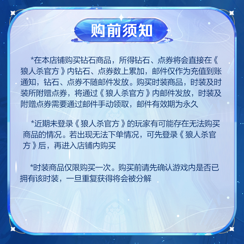 68元礼包 仅限iOS 999点券+紫晶钥匙x10 网易狼人杀 月限购1次
