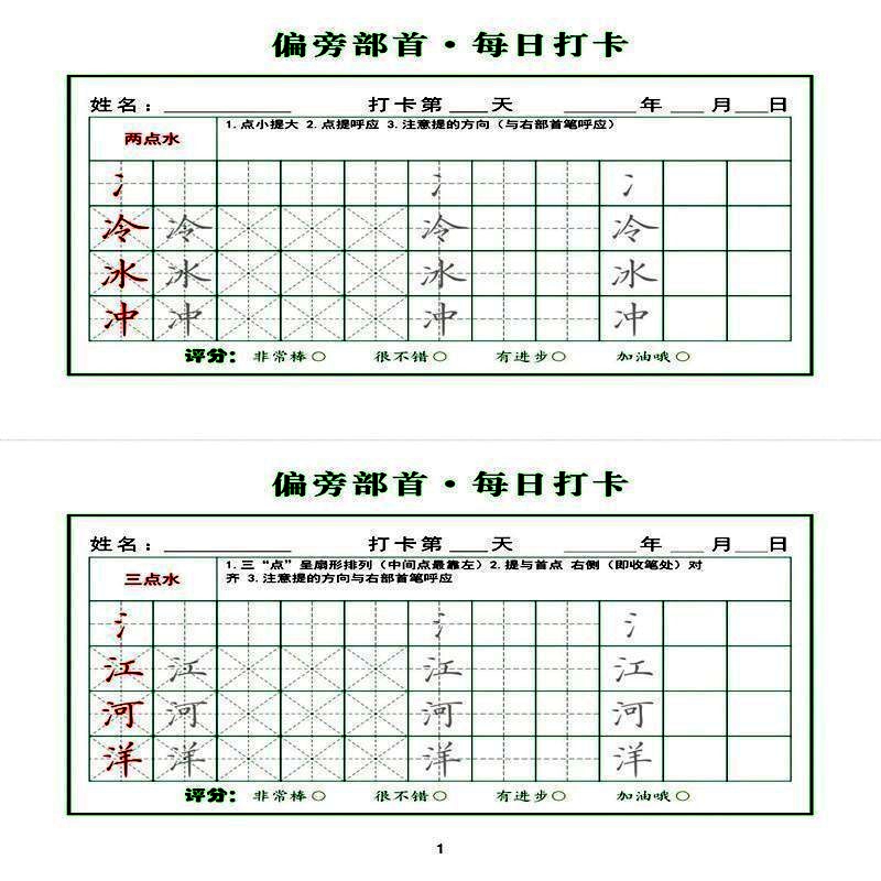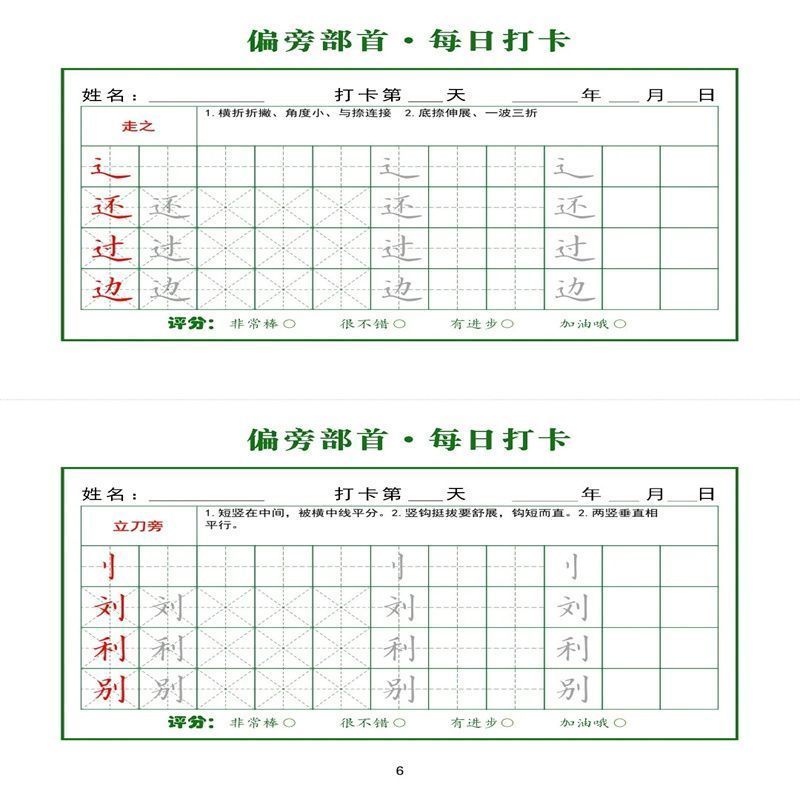 通用基本笔画偏旁结构每日打卡字帖练字打卡书写提升偏旁部首练习