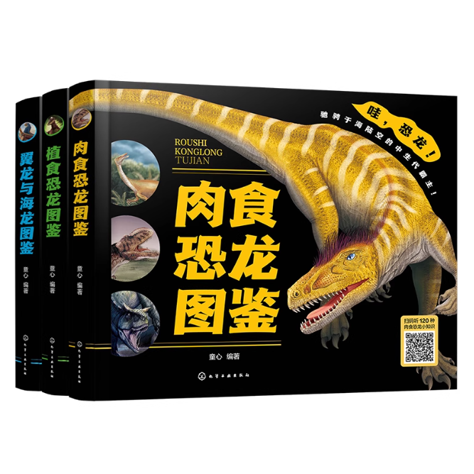 官方正版 精装 肉食恐龙植食恐龙翼龙与海龙图鉴 3册恐龙大百科 童心 外形特征栖息环境生存时代种群分类 儿童恐龙迷科普书