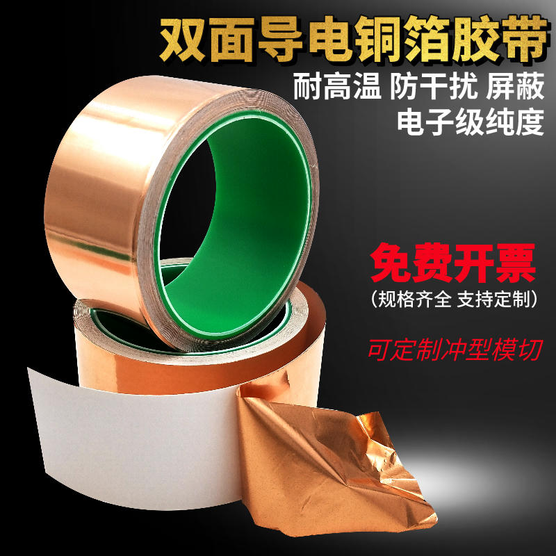 铜箔胶带双面导电胶布信号增强屏蔽铜铂纸电吉他手机主板散热铜自粘带液晶屏铜片修复模切单面胶纯铜双导0.06