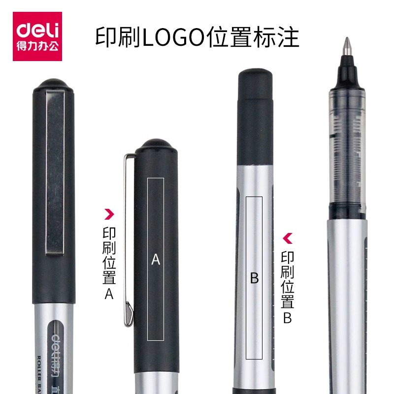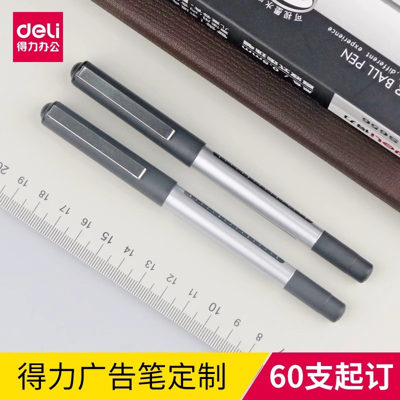 得力广告笔定制logo可印刷定做盖帽黑色走珠笔快干油墨 拔帽式商务直液式中性笔水笔 公司礼品笔订制60支起订
