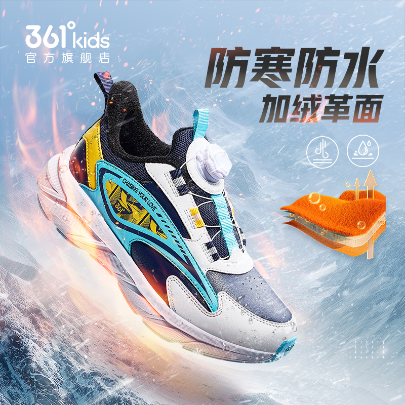 361童鞋儿童运动鞋男童秋冬新款跑步鞋加绒钮扣学生青少年女童鞋