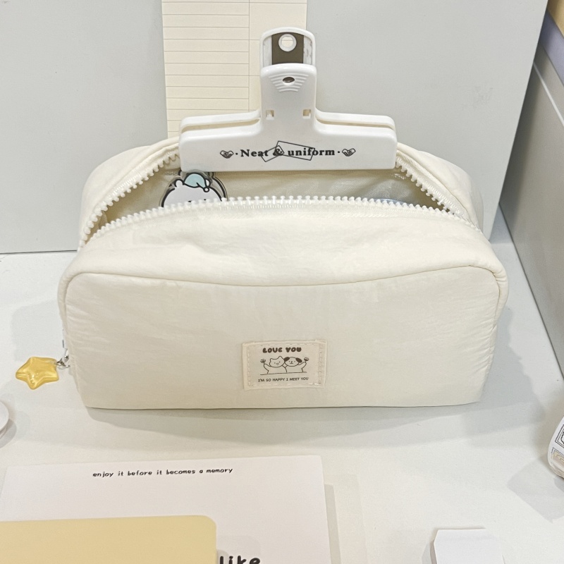 简约纯色系奶油小方墩墩包笔袋女生ins高颜值大容量多隔层文具袋