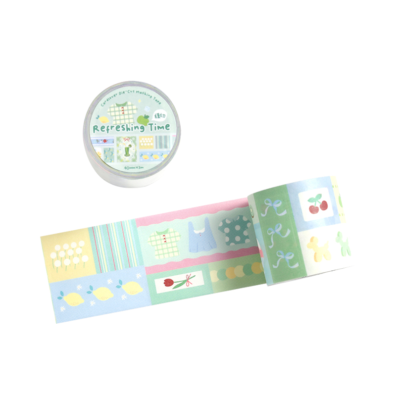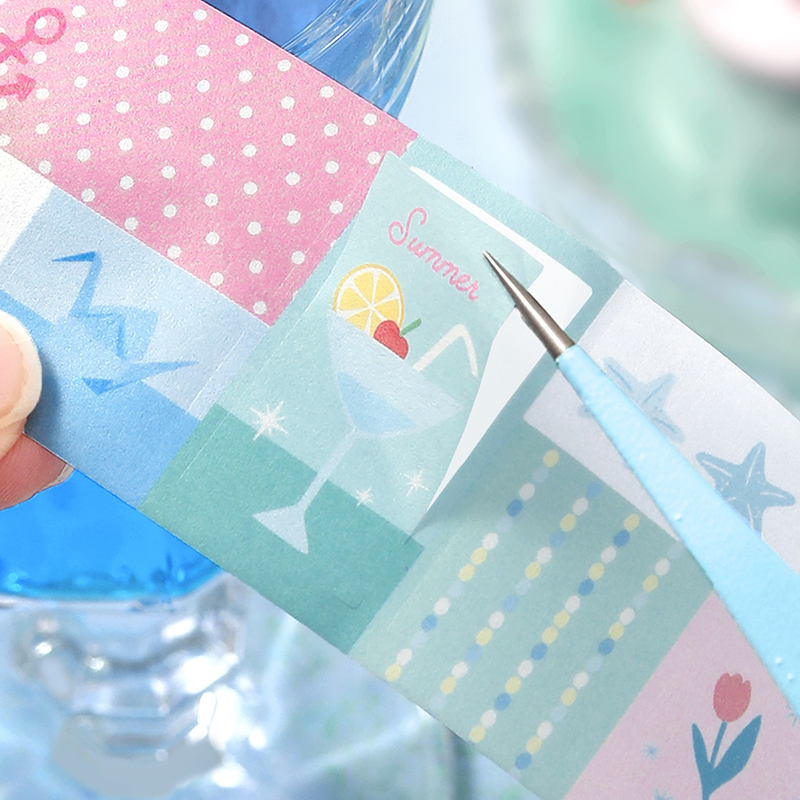 信的恋人 夏日4cm模切和纸胶带《涂鸦小世界》韩系清新拼布风插画矩形模切手帐装饰打底素材DIY拼贴材料