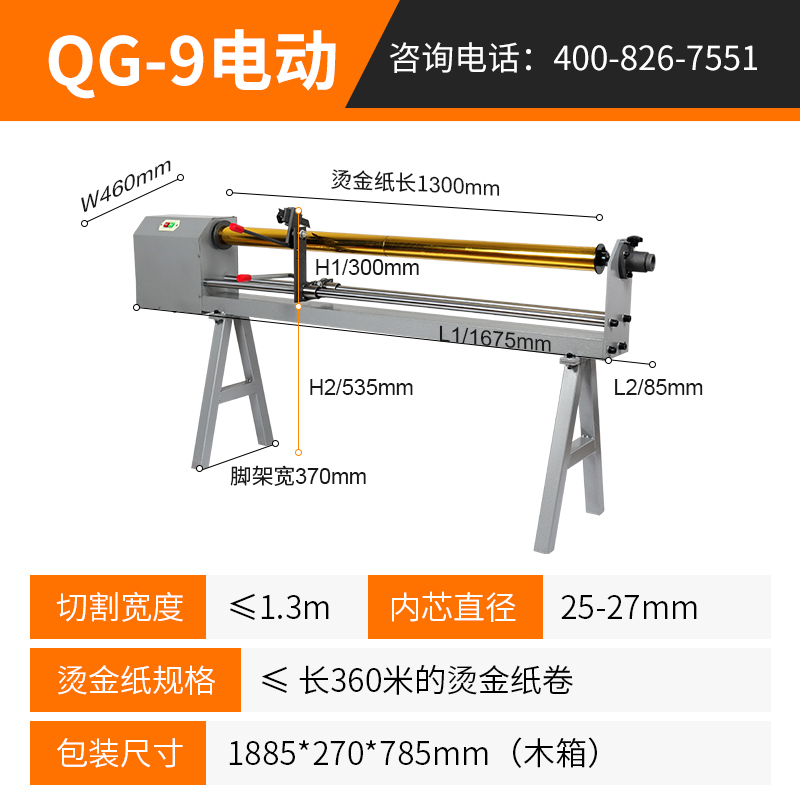 弘文电动烫金纸QG-9电化铝切割机1300烫金色带电动分切机纸卷1.3米印刷厂印后烫金加工金纸切断机锋利动力足