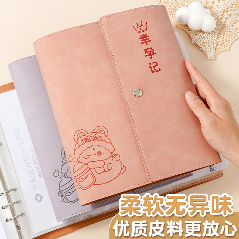 孕检收纳册产检A5便携蛇宝宝孕期档案册孕检报告单子孕妇b超建档手册本A4文件夹档案本资料检查单收集记录册