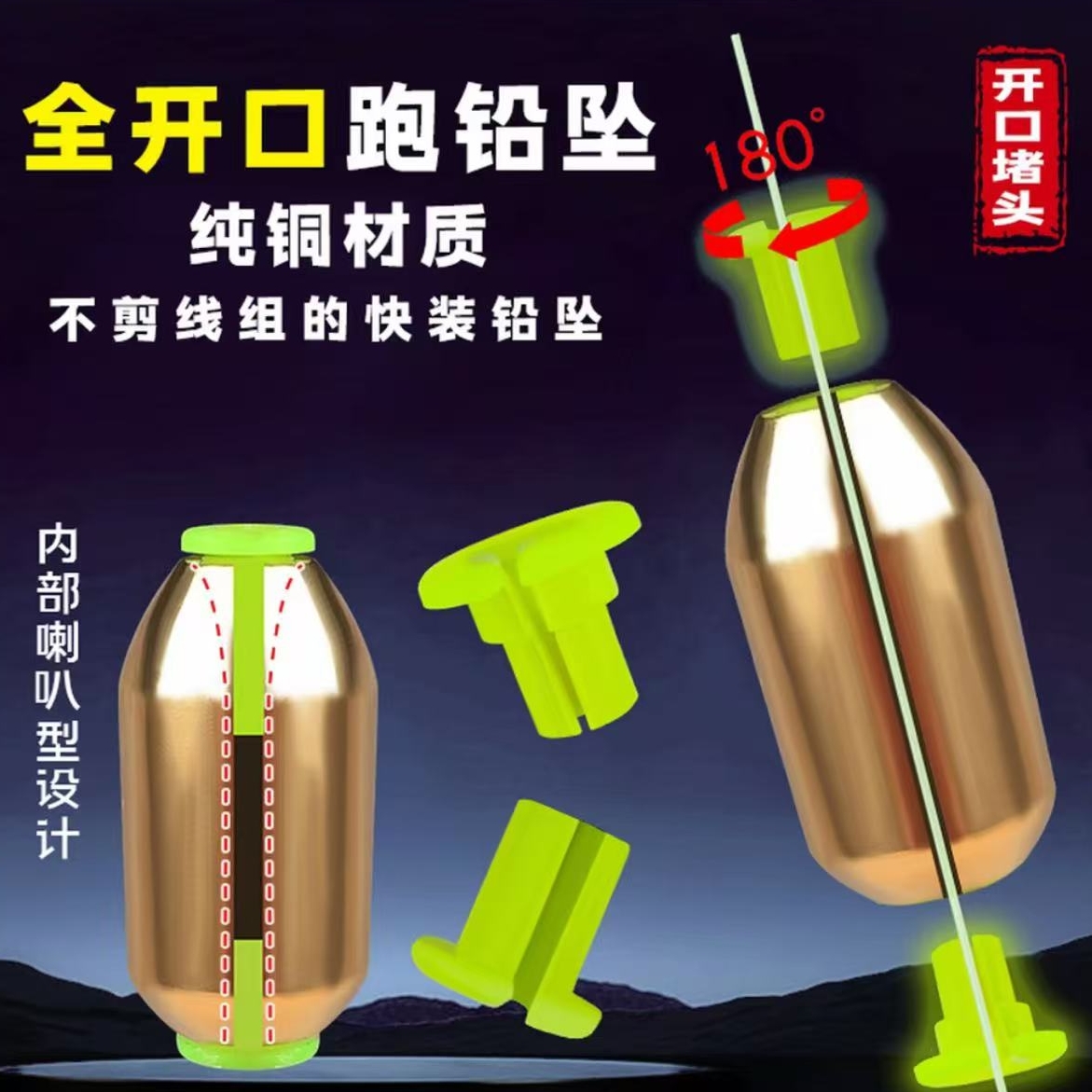 开口铅坠铜中水中通心快拆坠跑铅路亚反底钓通心可拆卸定位筏钓