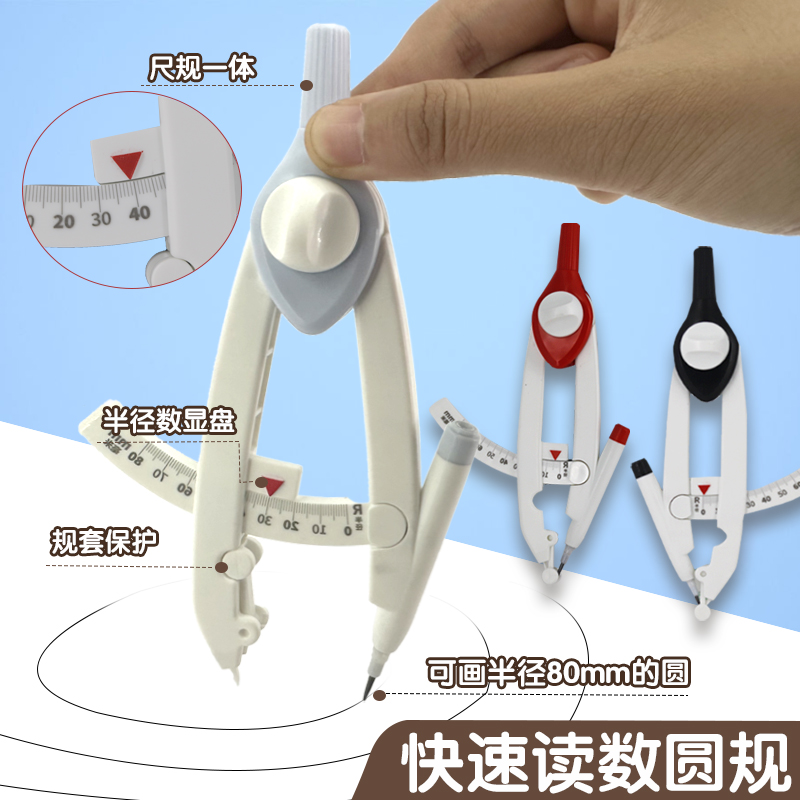 天卓带刻度数显圆规初中画图小学生专用数学课画圆零金属可带考场