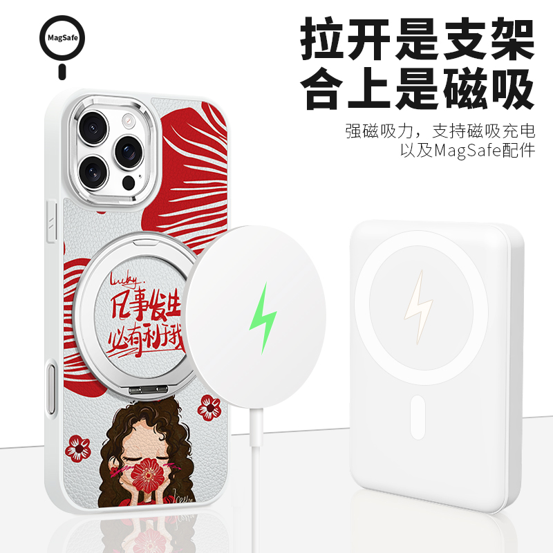 适用于苹果17pro手机壳17air凡事发生必有利于我iphone16promax幸运女孩15plus磁吸12皮纹11带支架14支点壳13