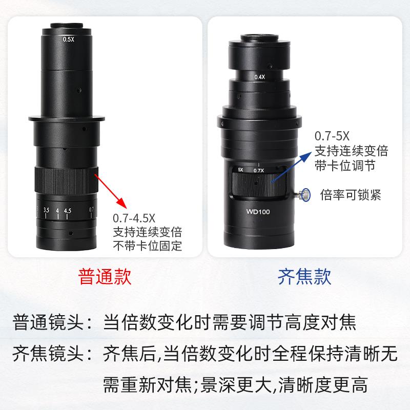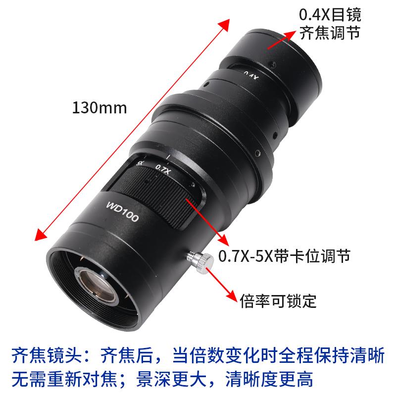 高清显微镜齐焦工业相机镜头0.7x-5x卡位调节200倍/400倍放大镜头