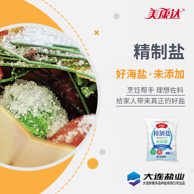 美康达精制海盐220g未加碘食盐不含抗结剂炒菜凉拌菜食盐