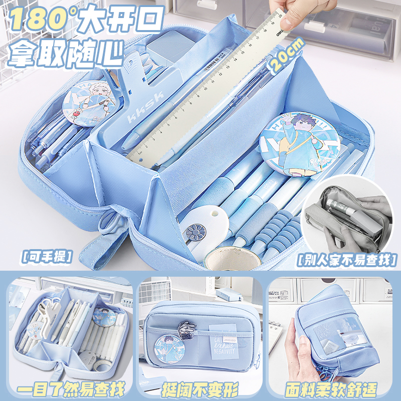极简ins风!大容量透明火山笔袋女孩款文具盒初中生铅笔盒女生学生用文具袋高颜值铅笔袋2025超火新款小学生