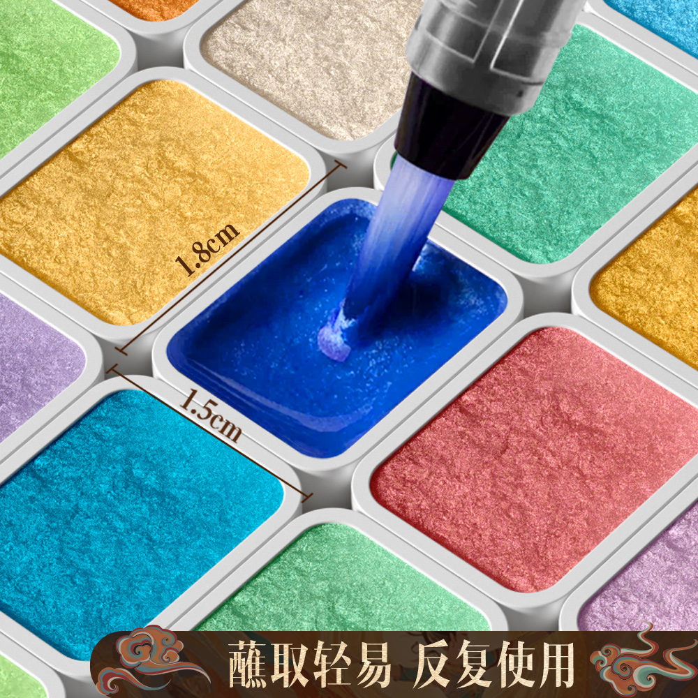 敦煌珠光矿物质水彩固体不透明彩绘颜料画画工具套装美术生专用儿童小学生水粉美甲用180色60色便携式分装盒