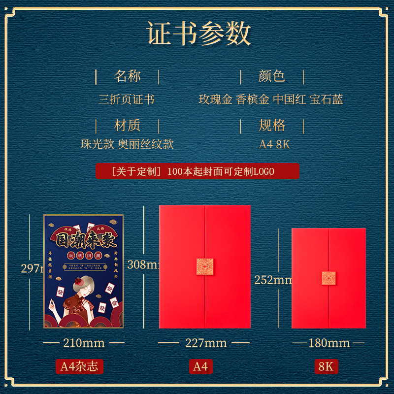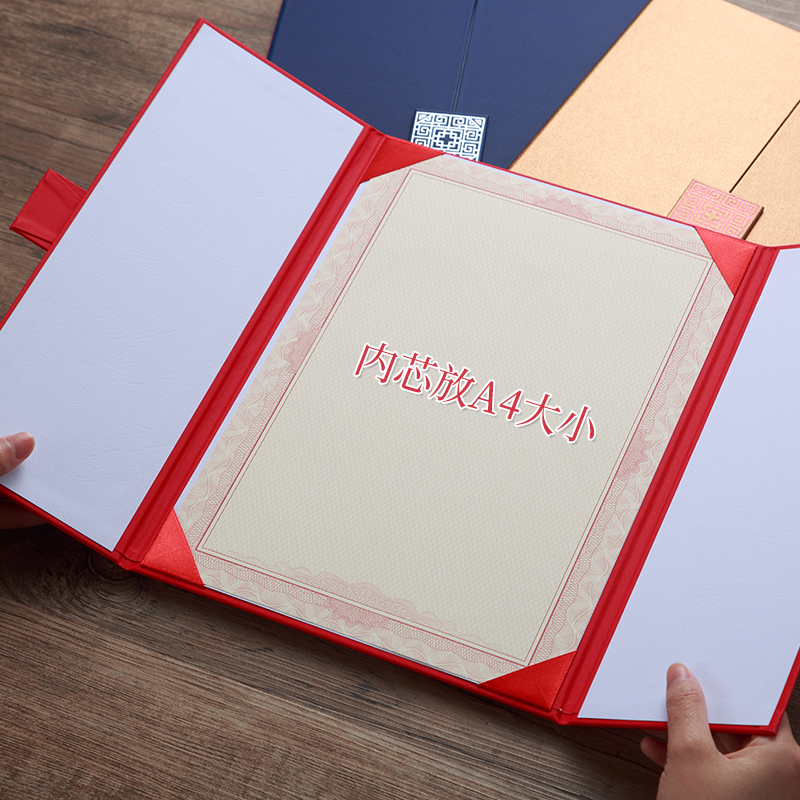 空白创意三折证书套高档荣誉证书聘书封皮奖状定制定做获奖A4外壳