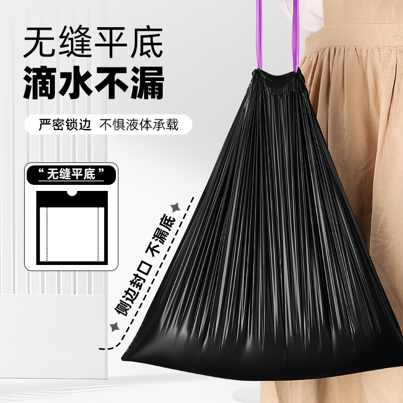 抽绳式垃圾袋家用加厚手提厨房宿舍用学生大号黑色塑料袋提拉收口