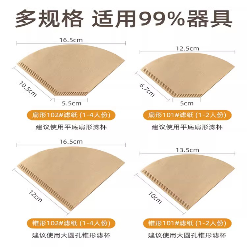 咖啡滤纸 手冲壶咖啡过滤纸家用滴漏式 扇形美式咖啡机滤纸滤杯网