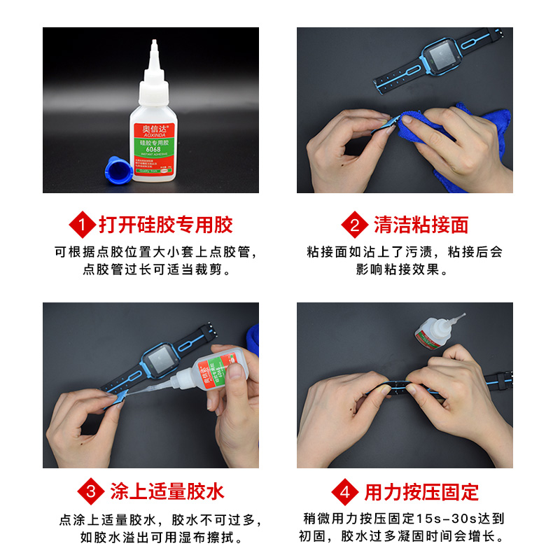 奥信达6068硅胶胶水无需处理直接粘接硅橡胶条车窗密封条TPU TPR TPE修复耳机手环表带娃娃的快干硅胶专用胶