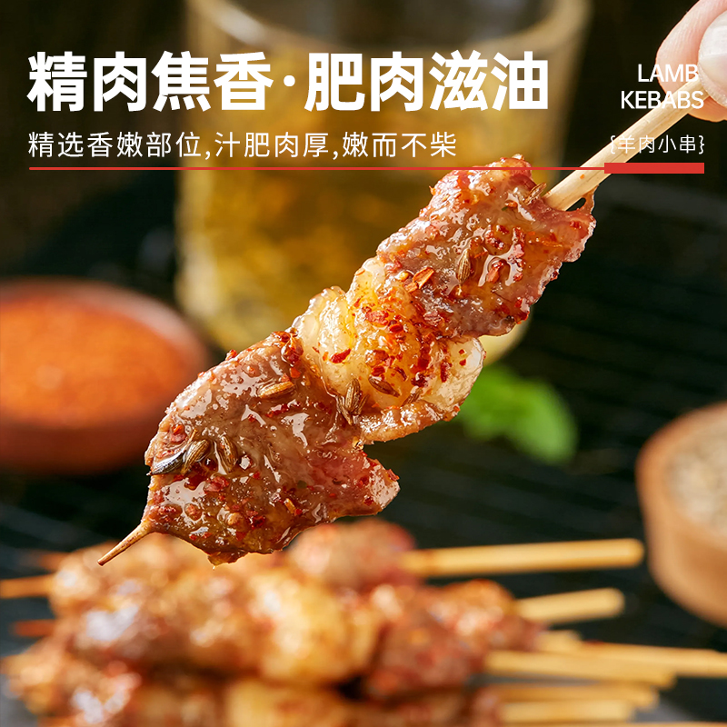 羊肉串新鲜羊肉原切牙签肉串儿童烧烤小串烤肉空气炸锅半成品食材