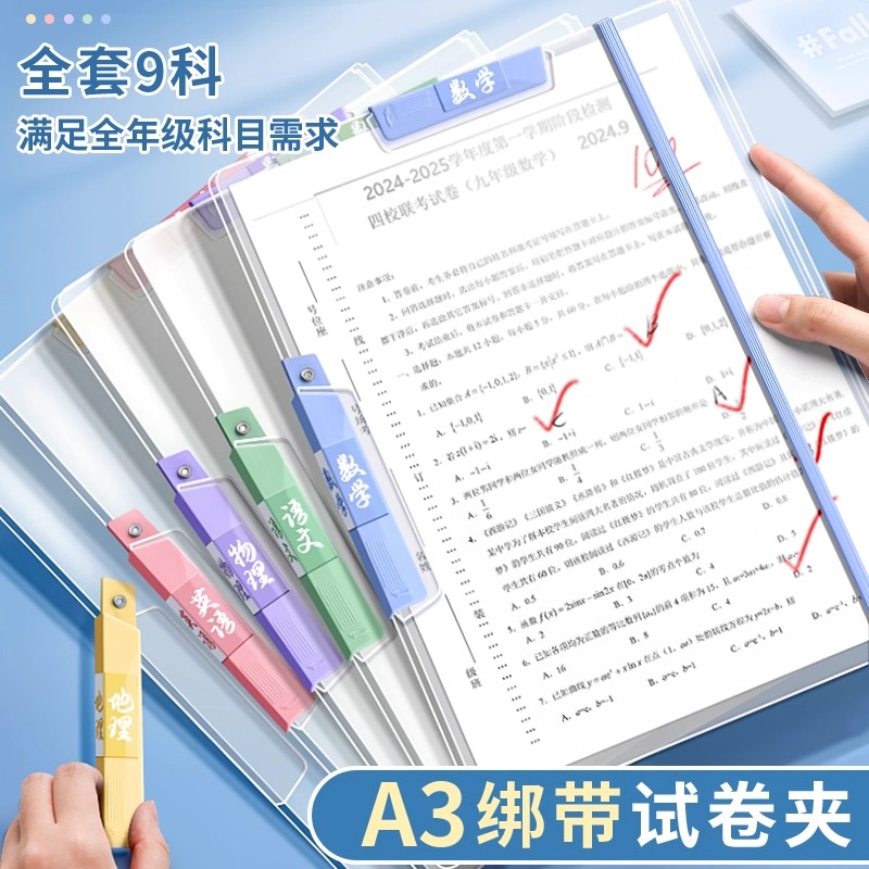 a3试卷夹收纳袋小学初中生专用双拉杆试卷整理神器文件夹卷子分类收纳高中生大容量a4透明插页绑带抽杆资料夹