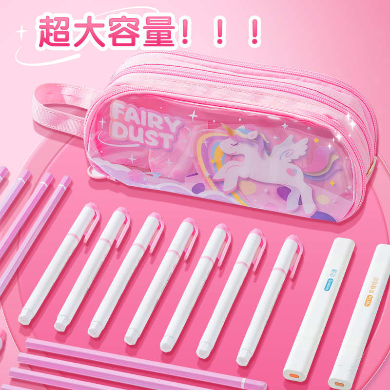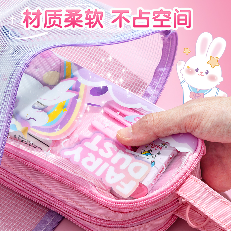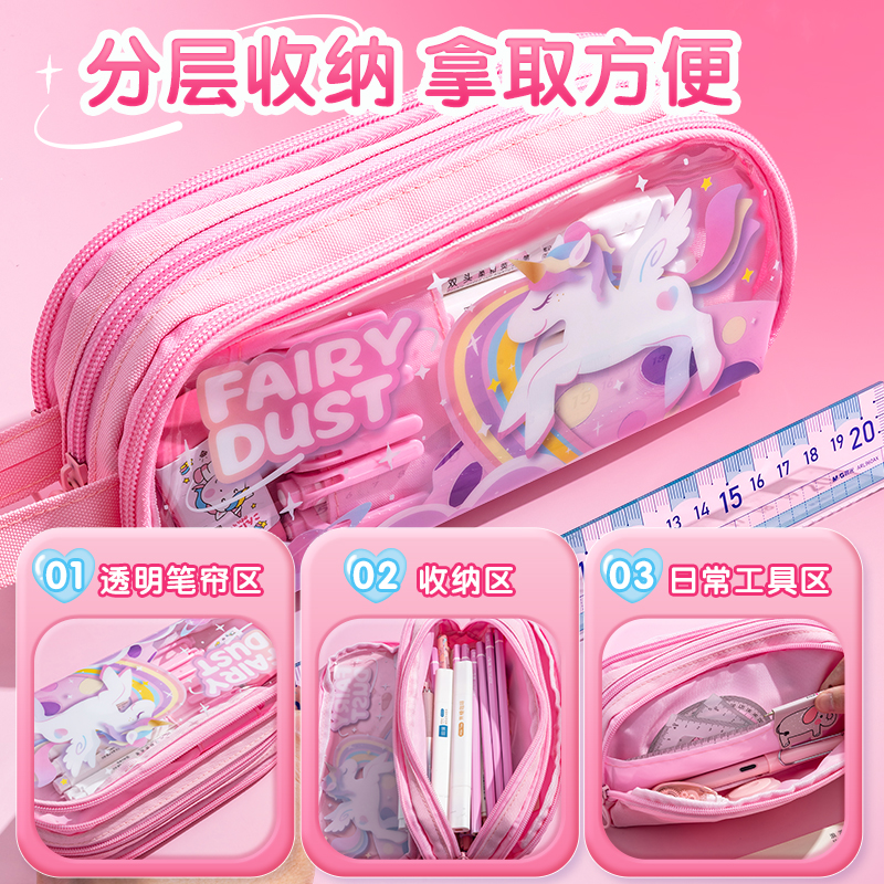 晨光笔袋女生2024新款一到六年级小学生大容量文具盒高颜值简约ins风三层多功能拉链款儿童铅笔盒初中生