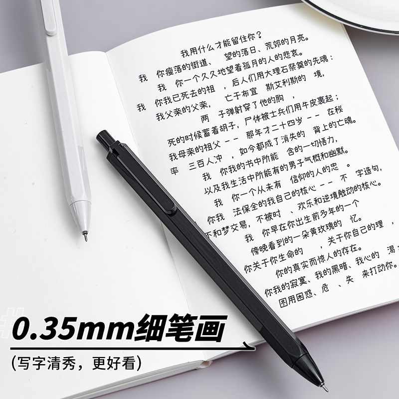 晨光中性笔ins无印风0.35mm黑色自动水笔全针管0.35按动式黑笔学生用特细超细简约本味冷淡风财务专用笔83007