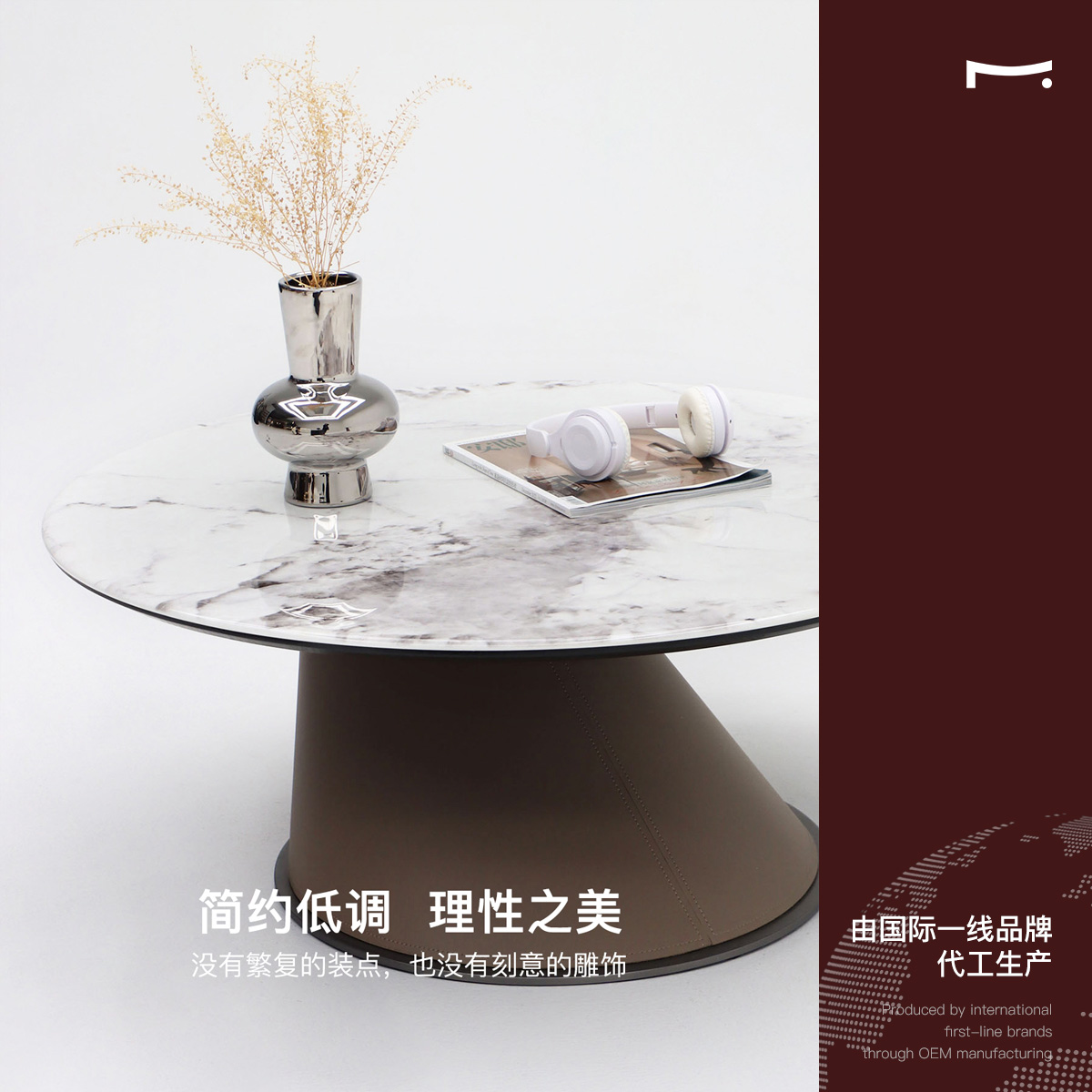某某严选意式极简微晶石马鞍皮碳素钢异形组合圆茶几阳台沙发卧室