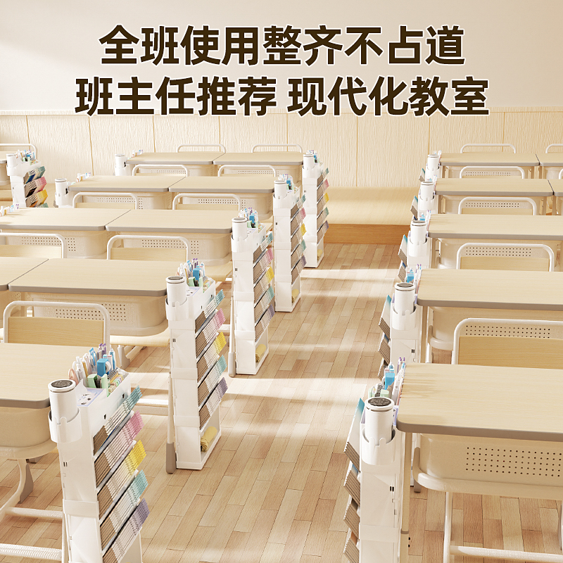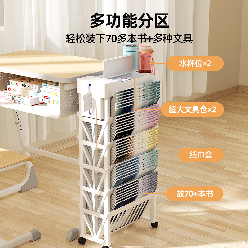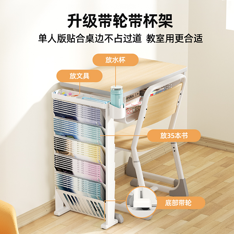 悟生可移动桌边书架教室用学生课桌收纳神器高中生书桌旁收纳置物架带轮书本收纳架放书整理挂袋书箱挂书袋
