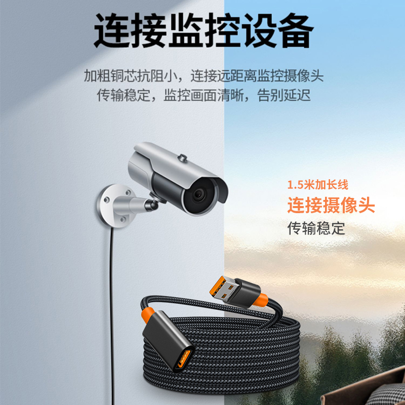 金属尼龙编织USB延长线公对母2.0高速数据线1.5米手机充电线加长转接线U盘鼠标键盘转接头车载监控打印机拓展
