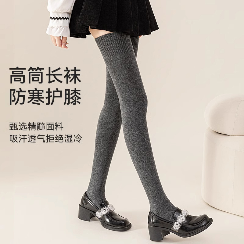过膝袜子女春秋长筒袜加长加厚保暖防滑护膝大腿黑色冬天小腿袜