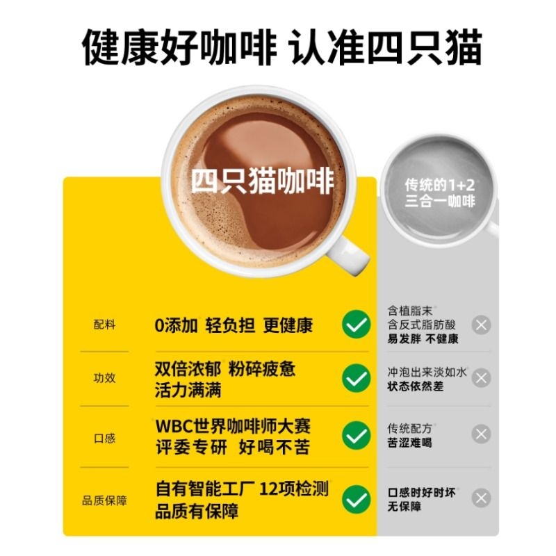 四只猫 0三合一植脂末速溶咖啡特浓拿铁蓝山风味卡布奇诺送小奶杯