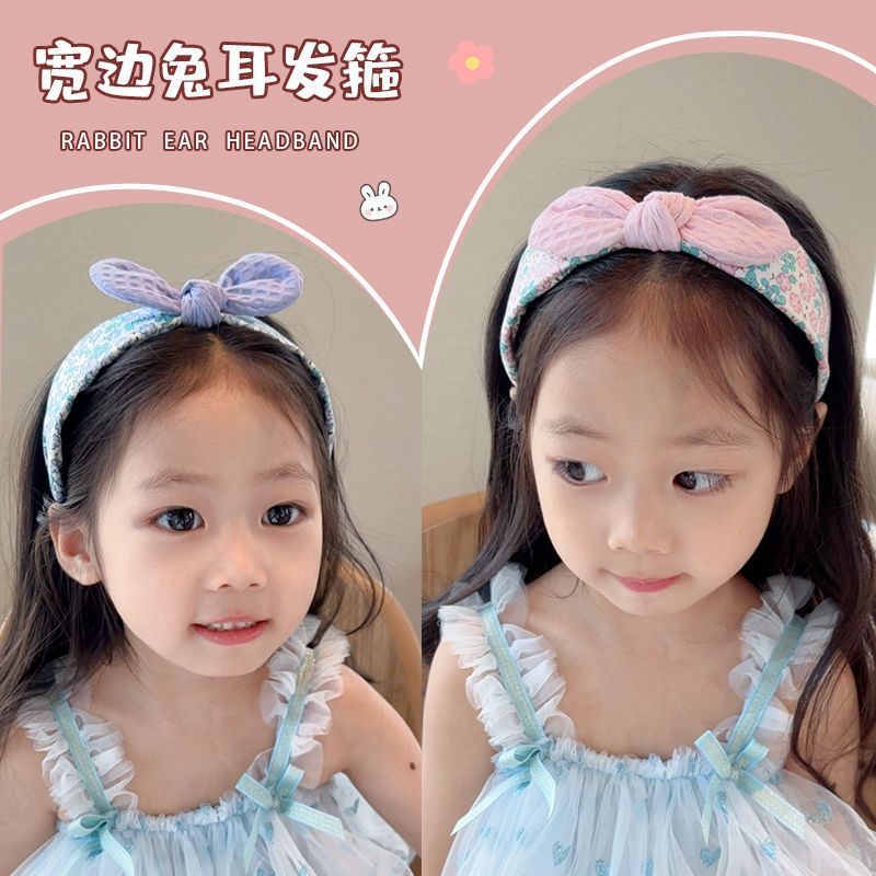 碎花兔耳朵韩版女童发箍不勒头甜美可爱风宽边圆点宝宝简约发