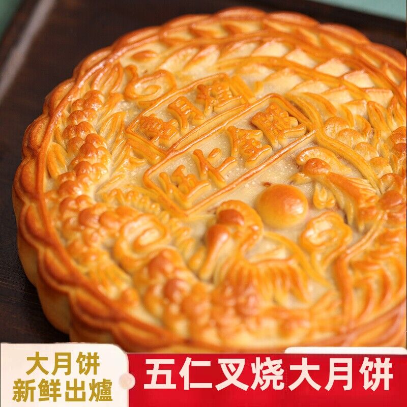 老式伍仁金腿大月饼3斤5斤广式五仁叉烧月饼咸蛋黄莲蓉中秋礼盒
